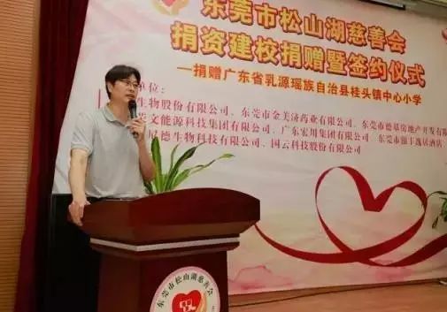 在溫暖莞人的同時,宋濤也將這壹股溫暖送到全國多地。2016年10月,松山湖慈善會與韶關(guān)市乳源瑤族自治縣桂頭鎮(zhèn)中心小學舉辦捐資建校捐贈暨簽約儀式,多家松山湖企業(yè)參與捐款,最終募集300萬元善款用於學校建設(shè),今年的4月18日,桂頭鎮(zhèn)松山湖實驗小學松山湖綜合樓落成。