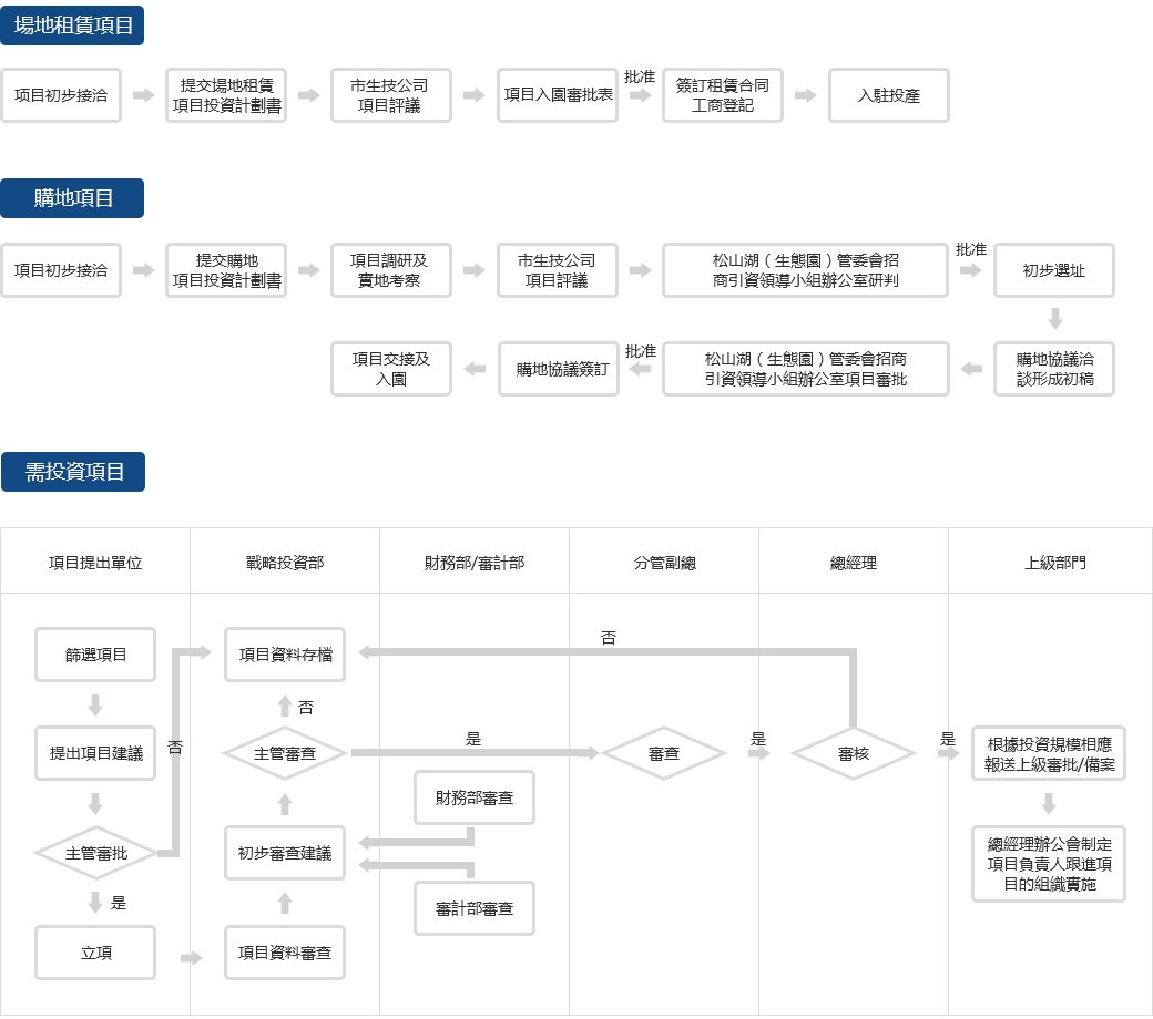 項目初步接洽 —> 提交場地租賃項目投資...
